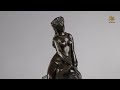 Proof in bronze with shaded brown patina depicting Leda and the Swan. A great classic in the 19th century, based on the myth of Leda seduced by Zeus, who took the form of a Swan. Early edition cast signed on the mound. Black marble base. Circa: 1880